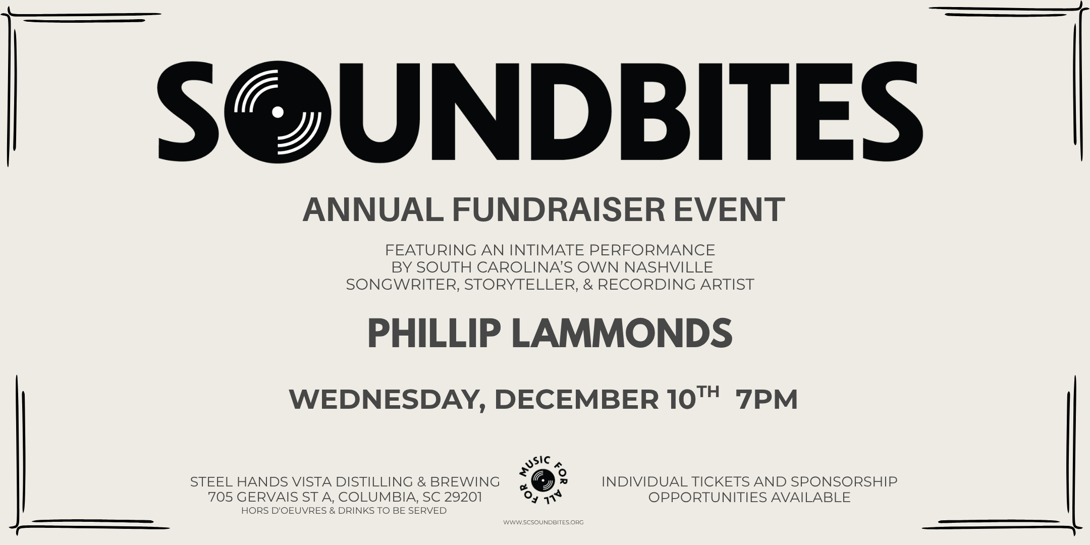Join us for the Annual SC SoundBites Fundraiser, an inspiring evening dedicated to raising money to provide musical instruments to those less fortunate.